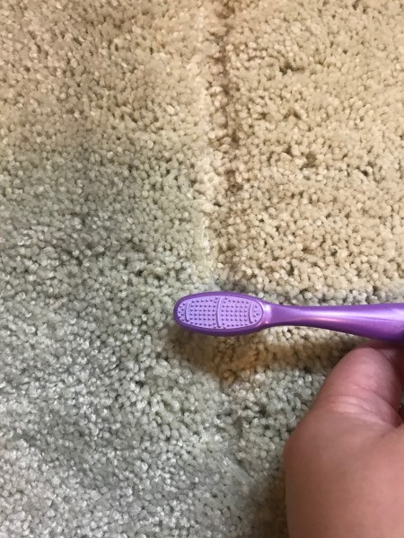 There are some carpet stains that don’t go away with water. In cases like that, use a toothbrush to loosen the stain and gradually it will disappear.